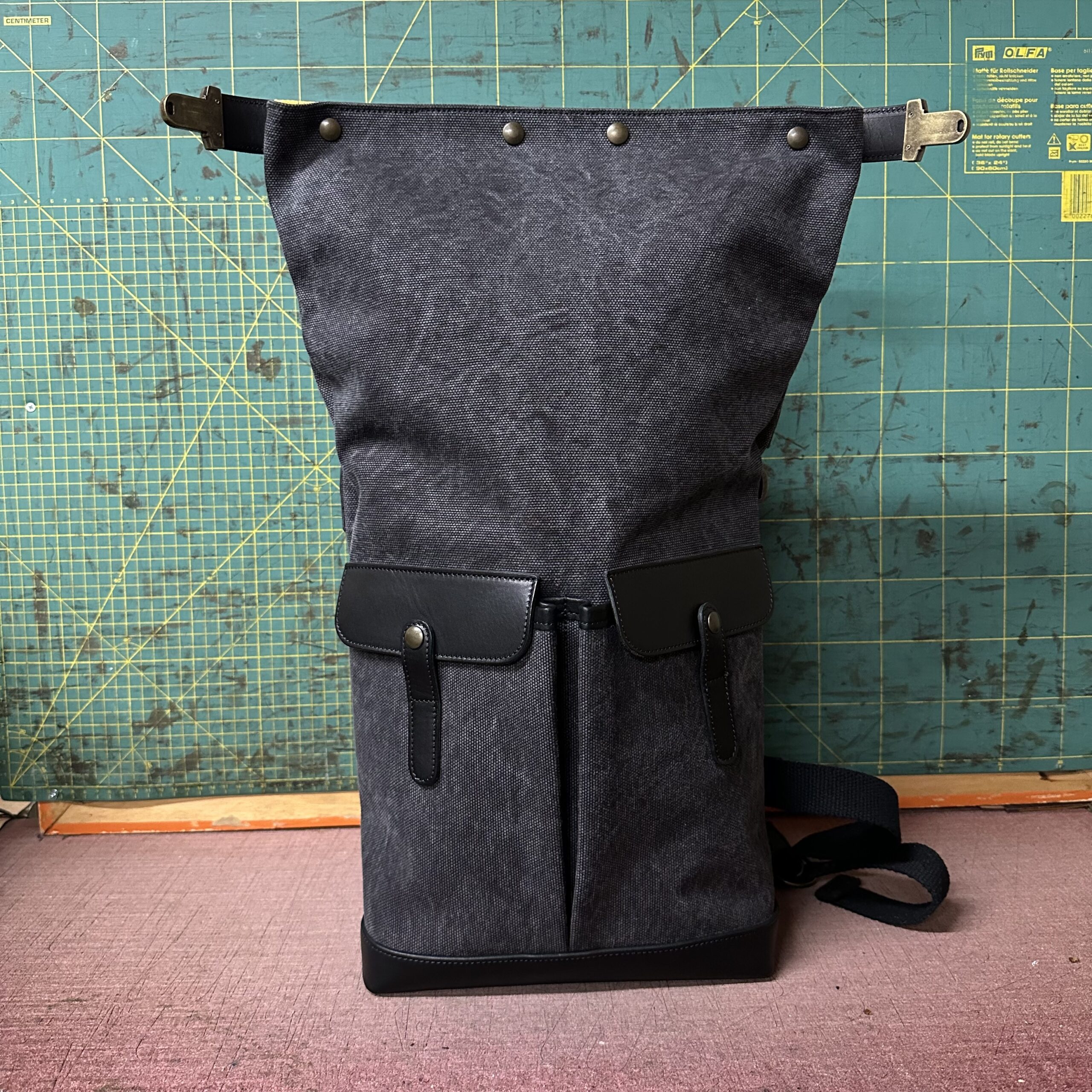 La tascona a cannone,infatti, invece di essere completamente in vacchetta è in tela con le rifiniture che restano in vacchetta!