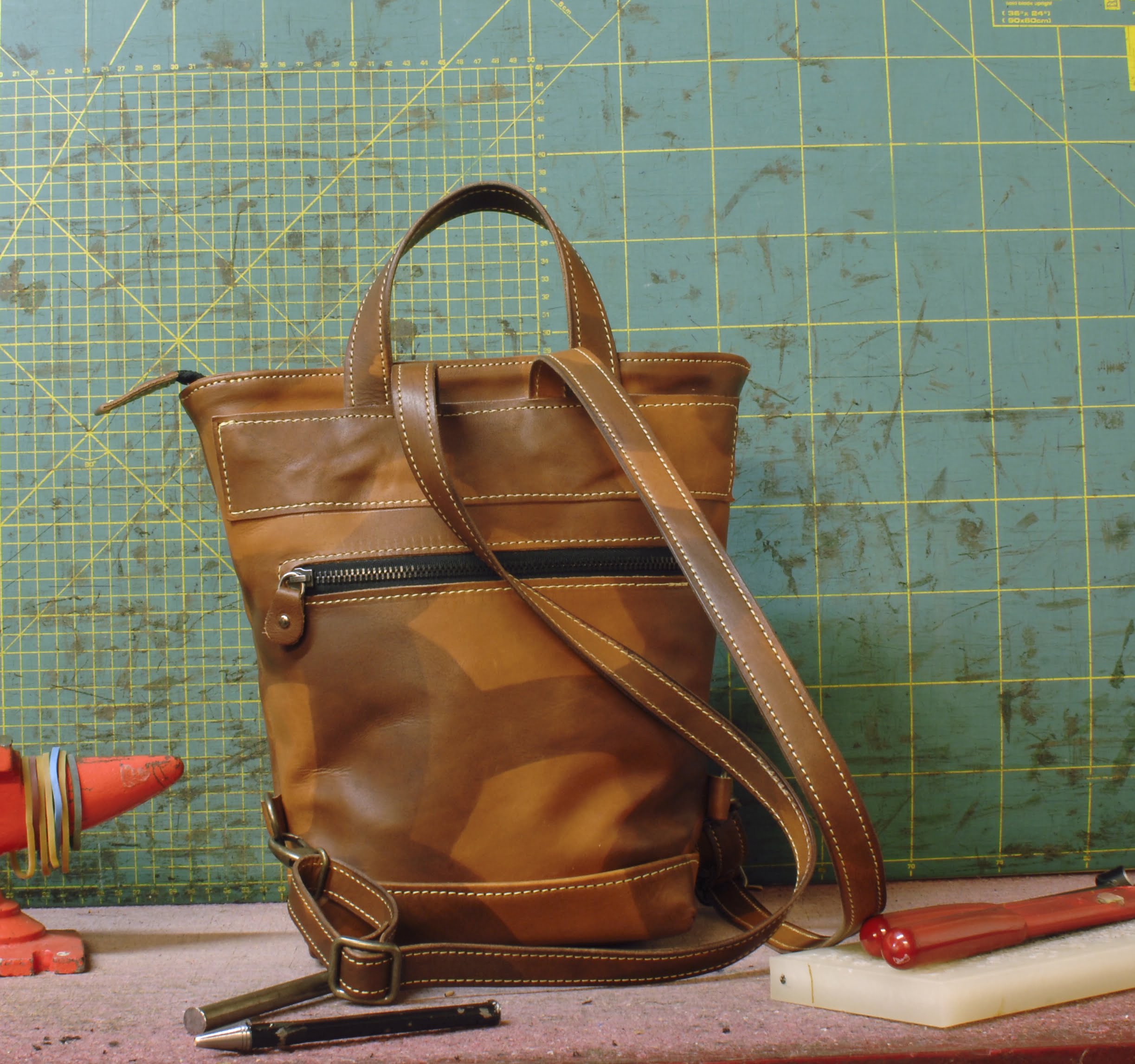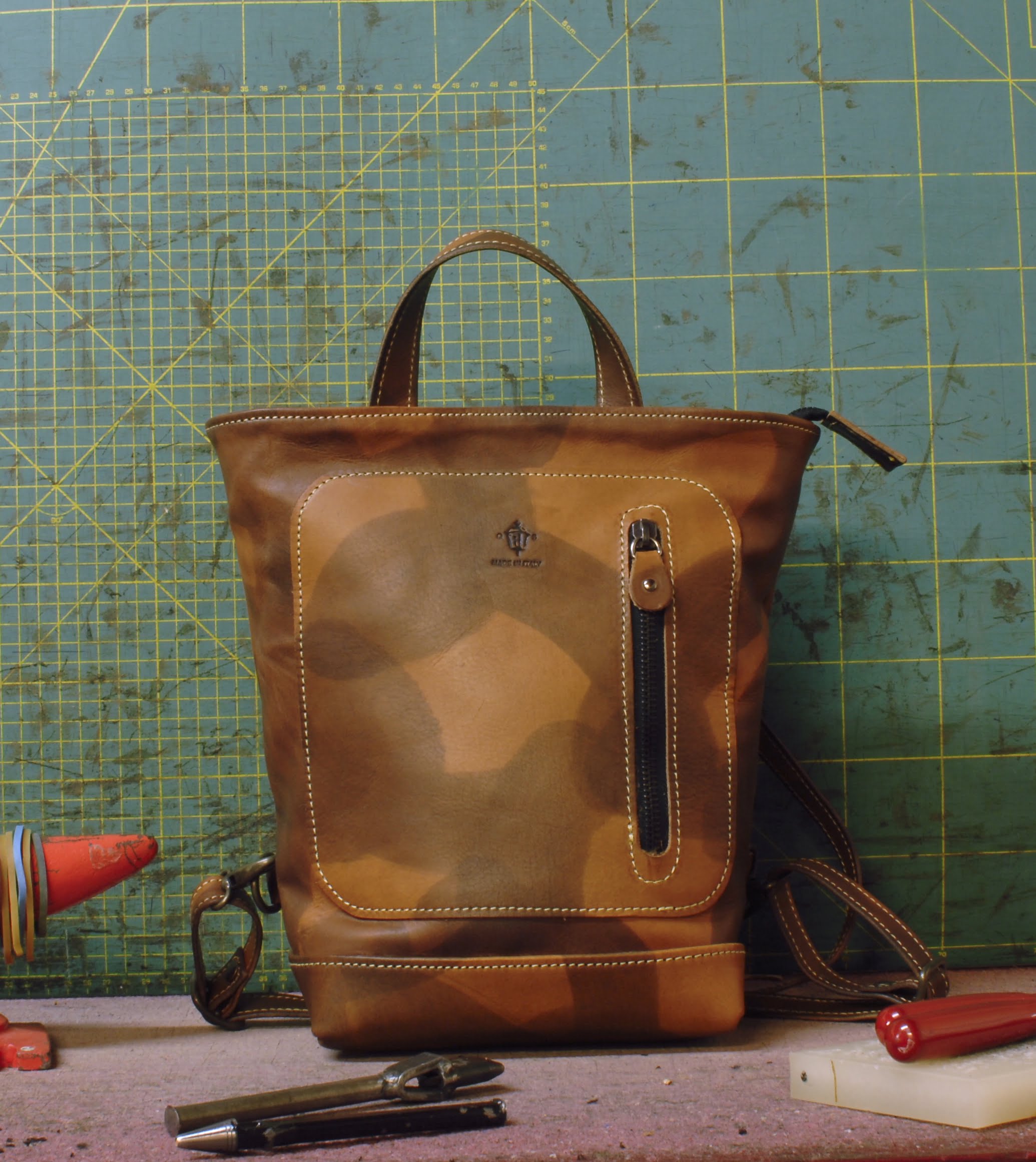 Mini minimal in vacchetta spugnata base cuoio e spugnature cuoio scuro!