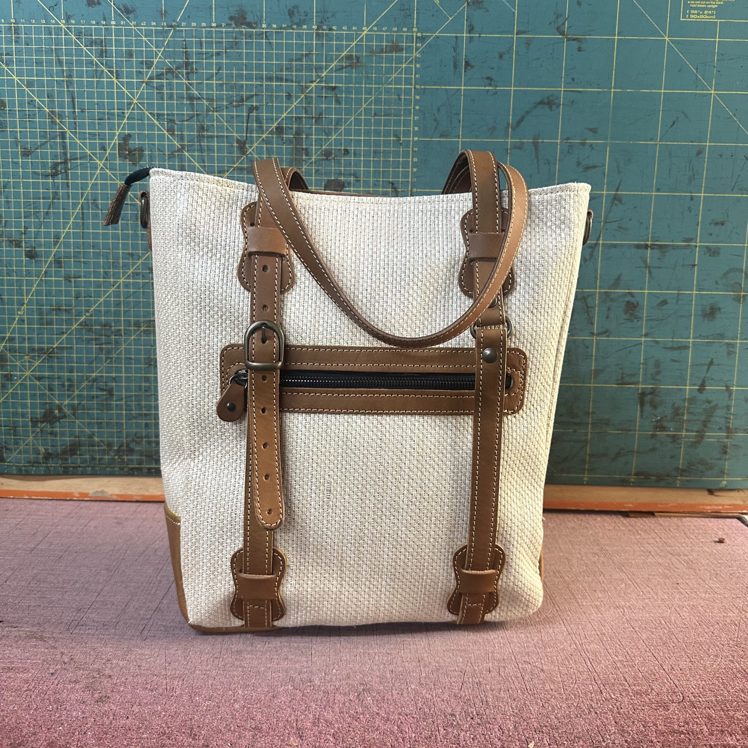E come sempre, i materiali raccontano il momento in cui li ho scelti: tela, pelle, accoppiamenti presi quasi di slancio, giusto perché in quel preciso istante mi facevano dire “sì, è lei”.
