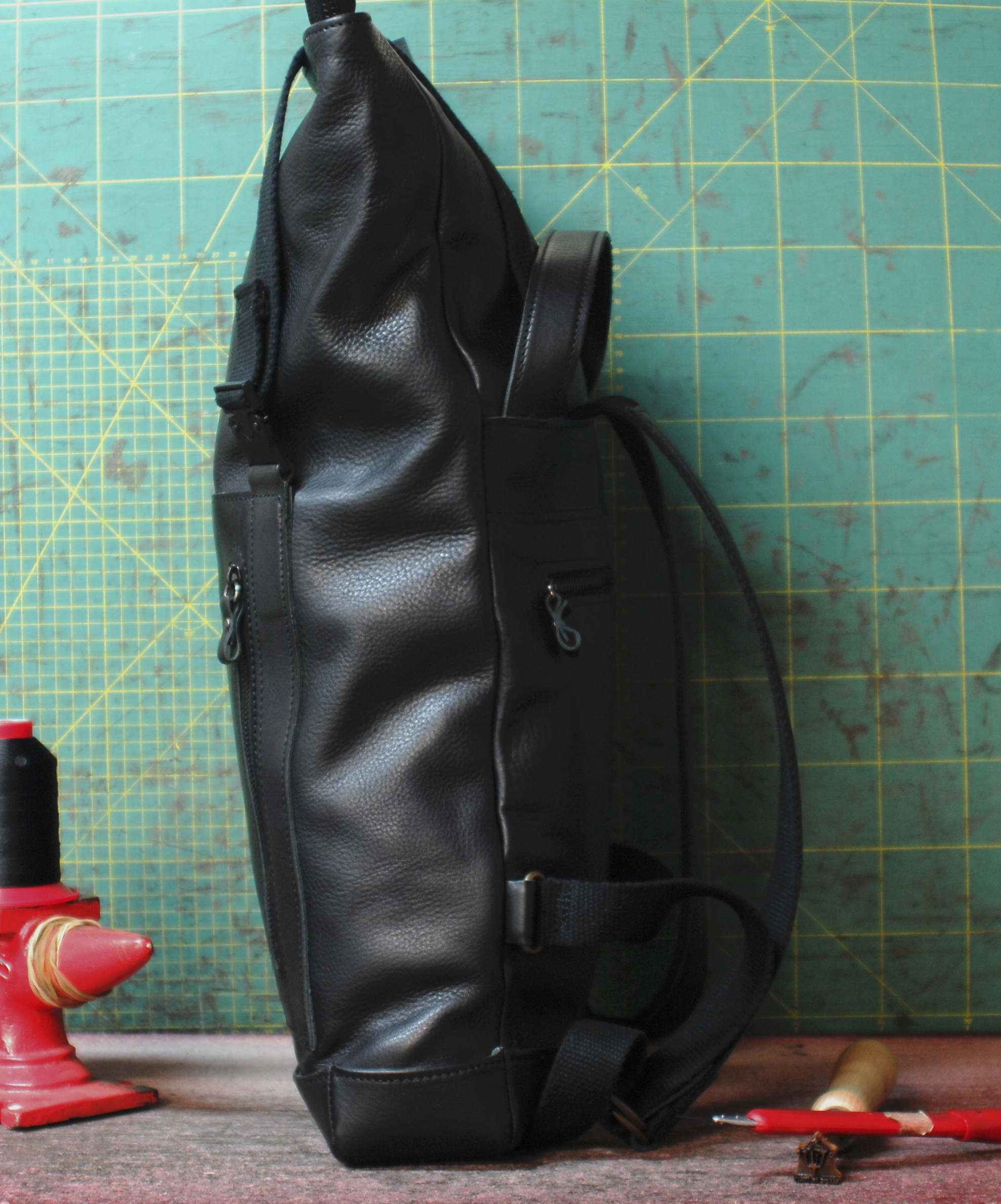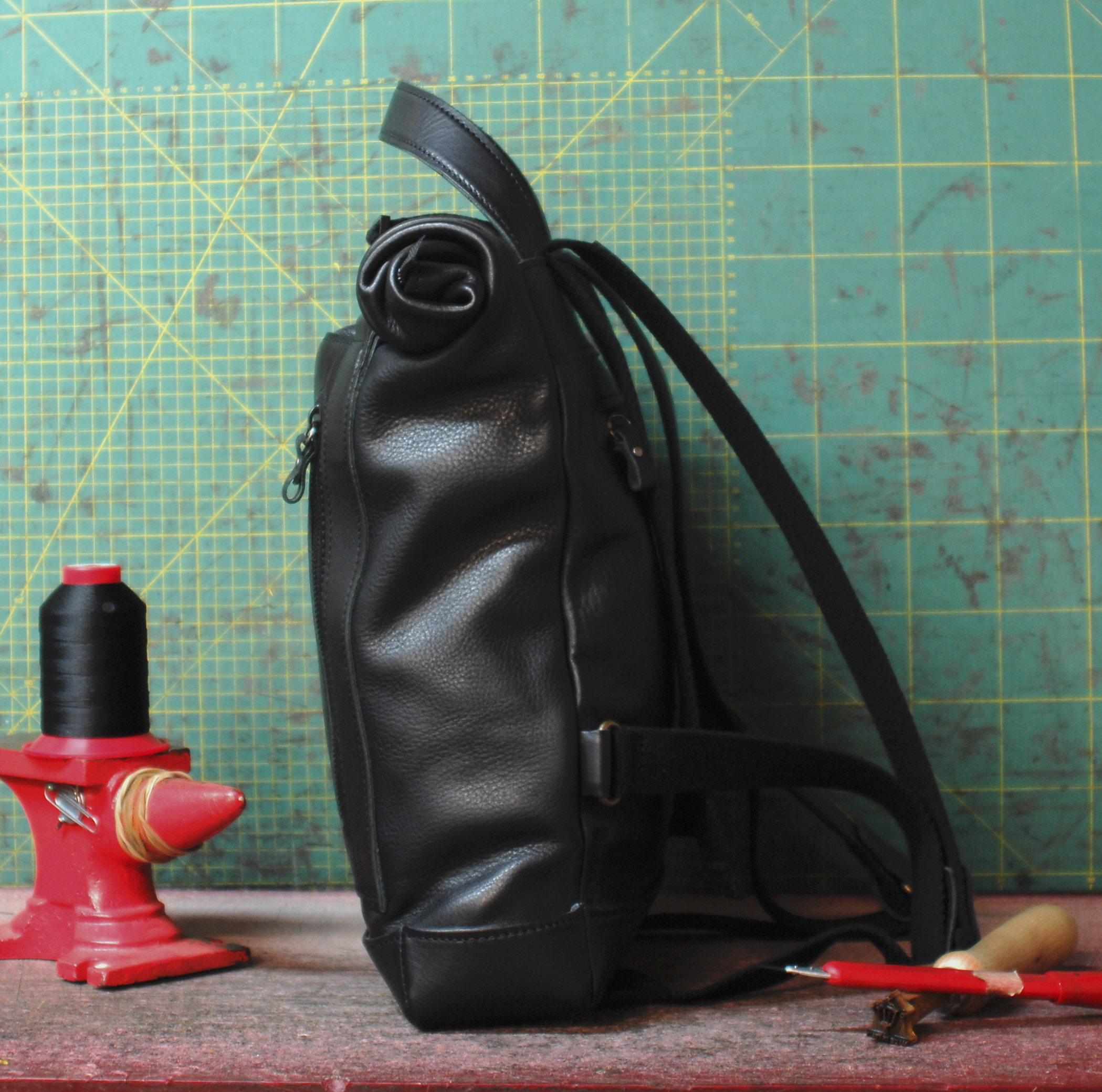Come ogni pezzo che vedete nel mio negozio,è realizzato completamente da me in ogni suo passaggio,dal disegno,alla creazione del modello in cartoncino,dal taglio della pelle all’assemblaggio e cucitura. Compresa ricerca di tutti i materiali dalla pelle,nelle migliori concerie di Santa Croce sull’Arno in Toscana,polo europeo per la concia, a tutto quello che riguarda accessori e tessuti tutto proveniente dall’Italia!