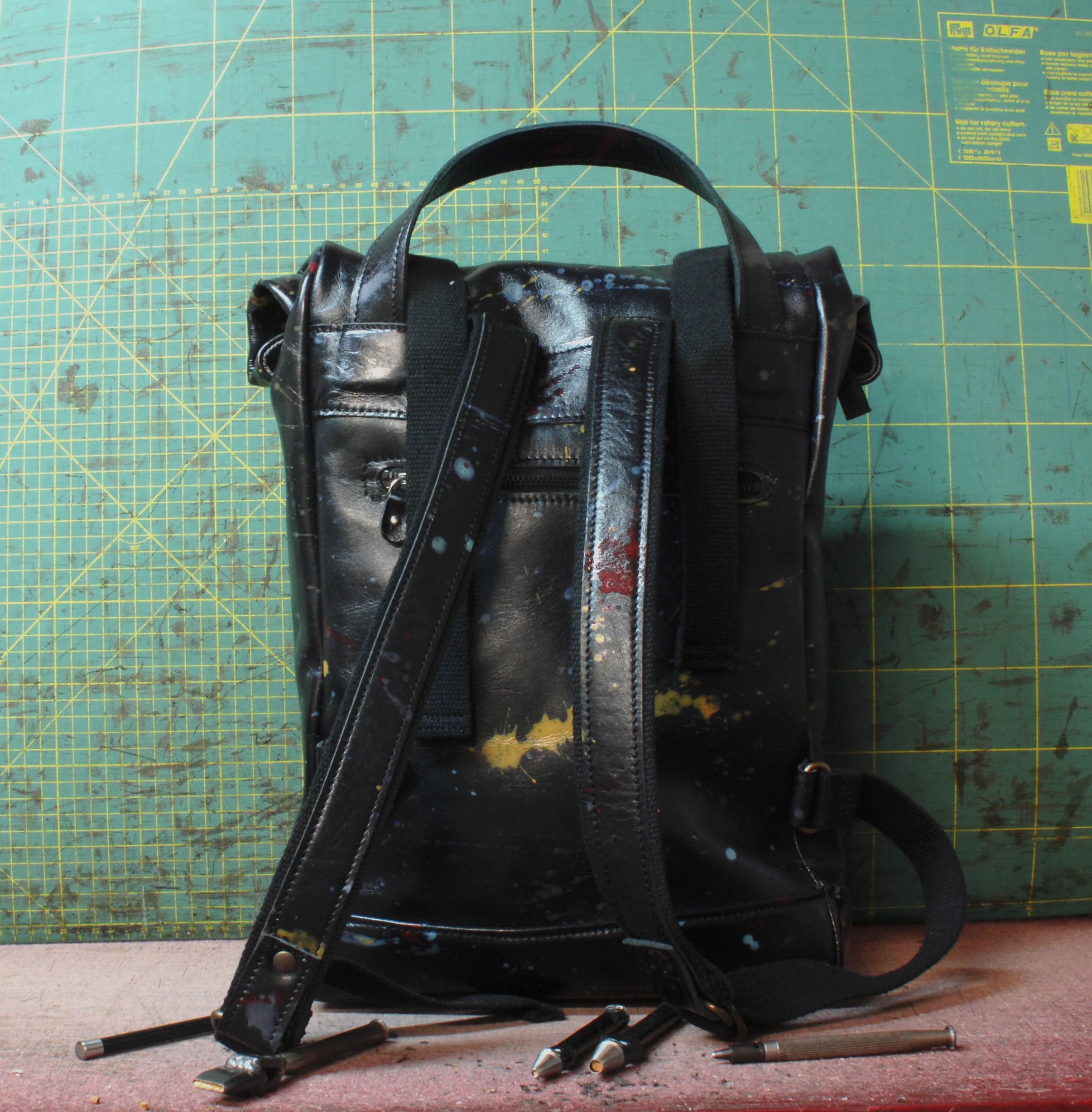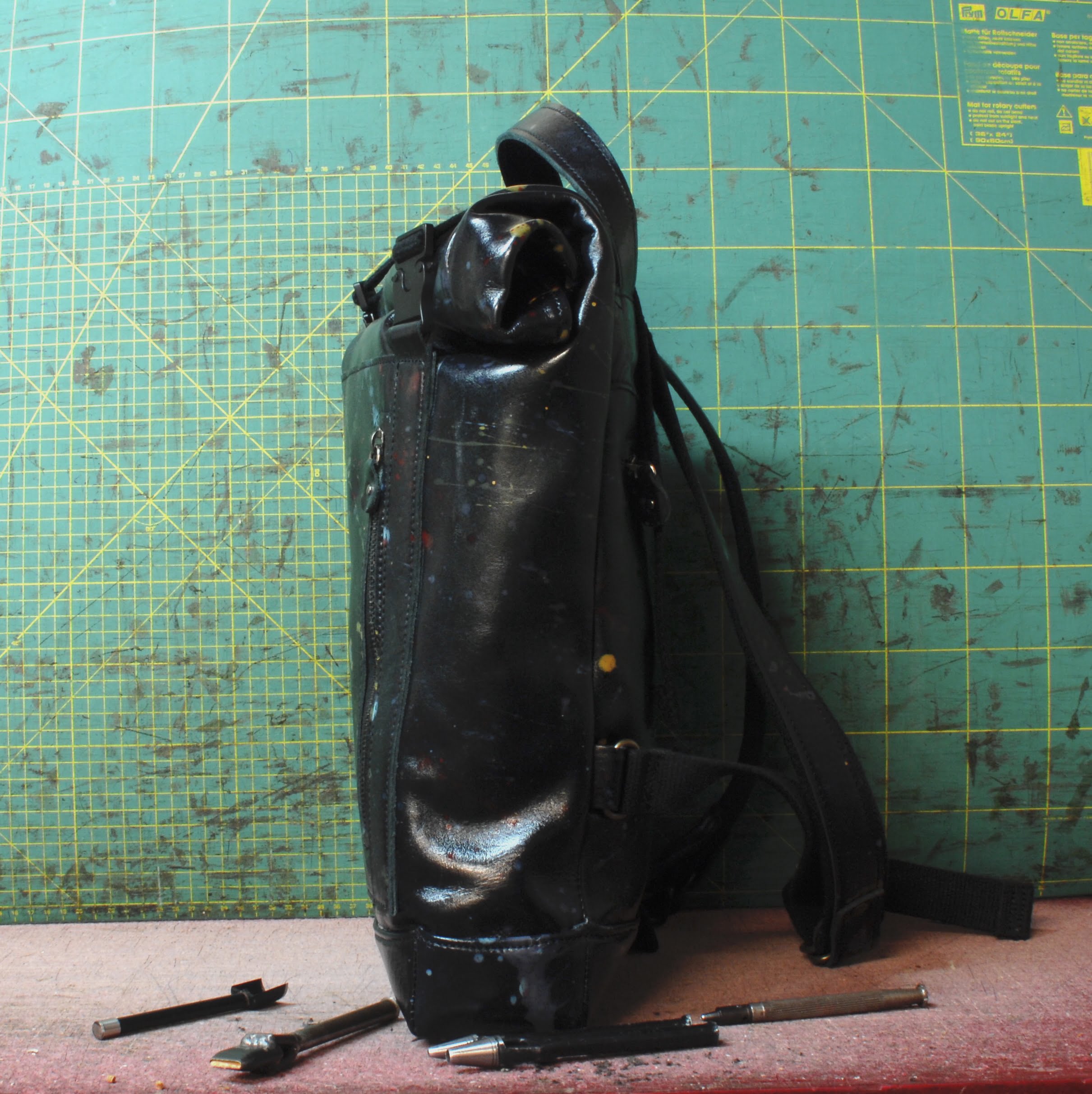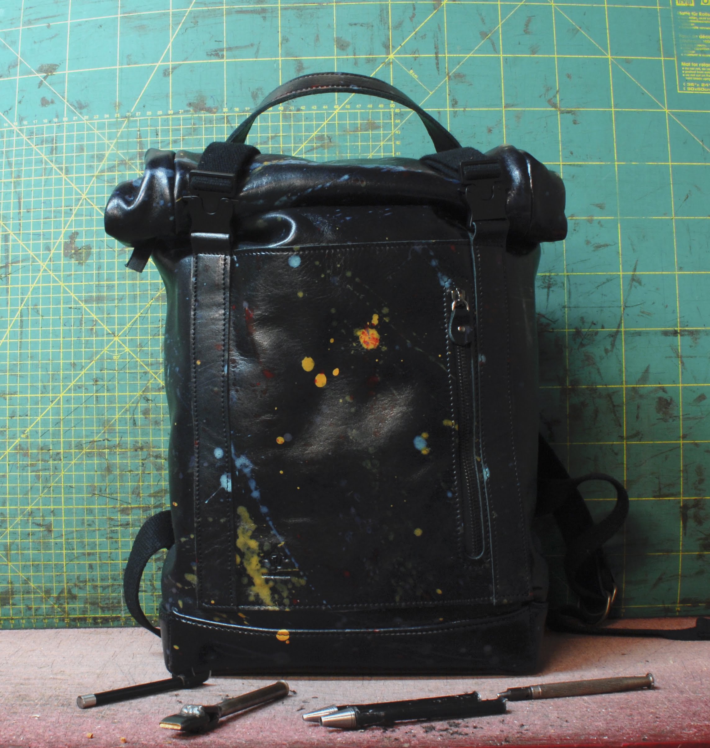 La sua caratteristica è di esser realizzata su pelle conciata al vegetale (come tutte le pelli che utilizzo sempre) e schizzata nel vero senso della parola completamente a mano!