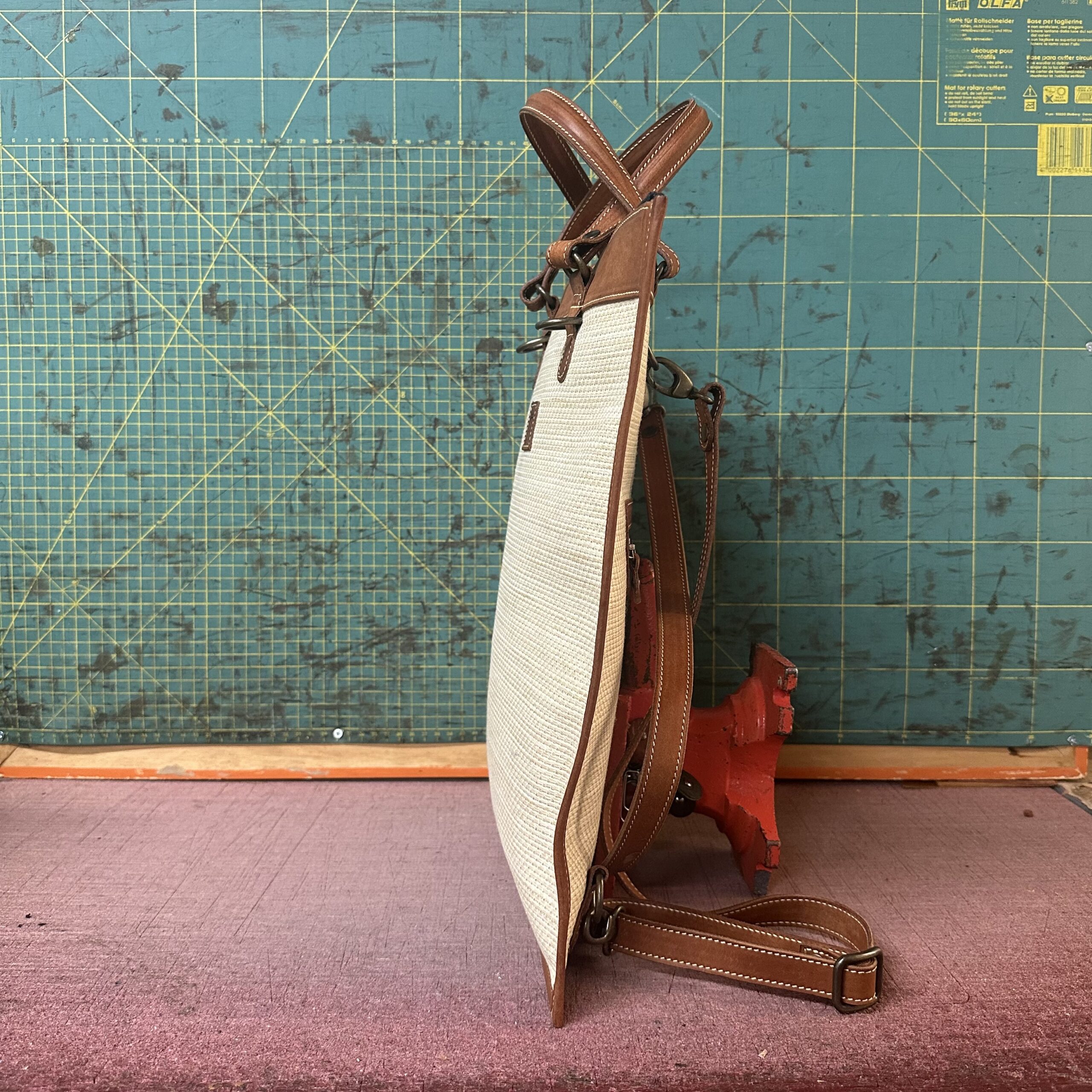 E come sempre, i materiali raccontano il momento in cui li ho scelti: tela, pelle, accoppiamenti presi quasi di slancio, giusto perché in quel preciso istante mi facevano dire “sì, è lei”.