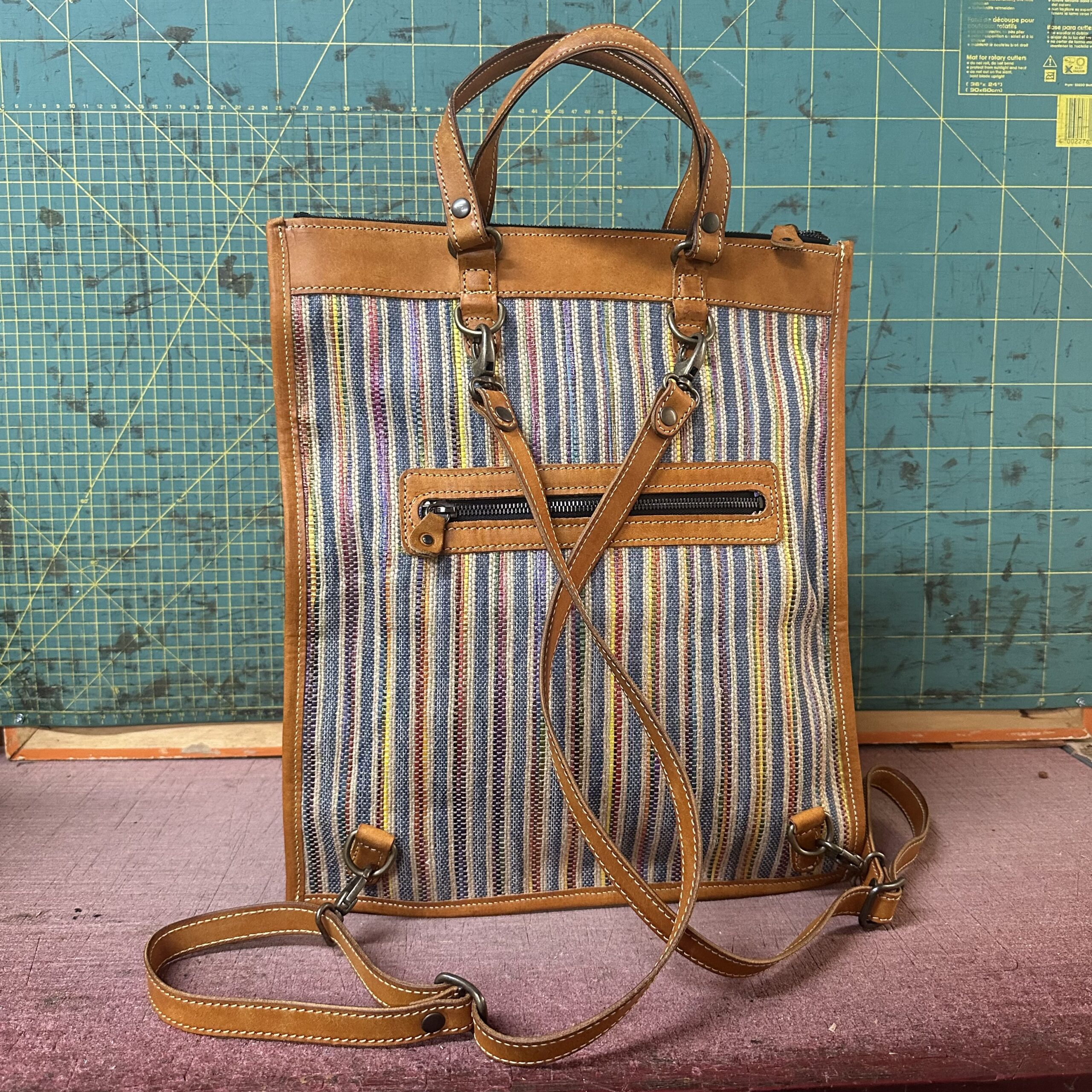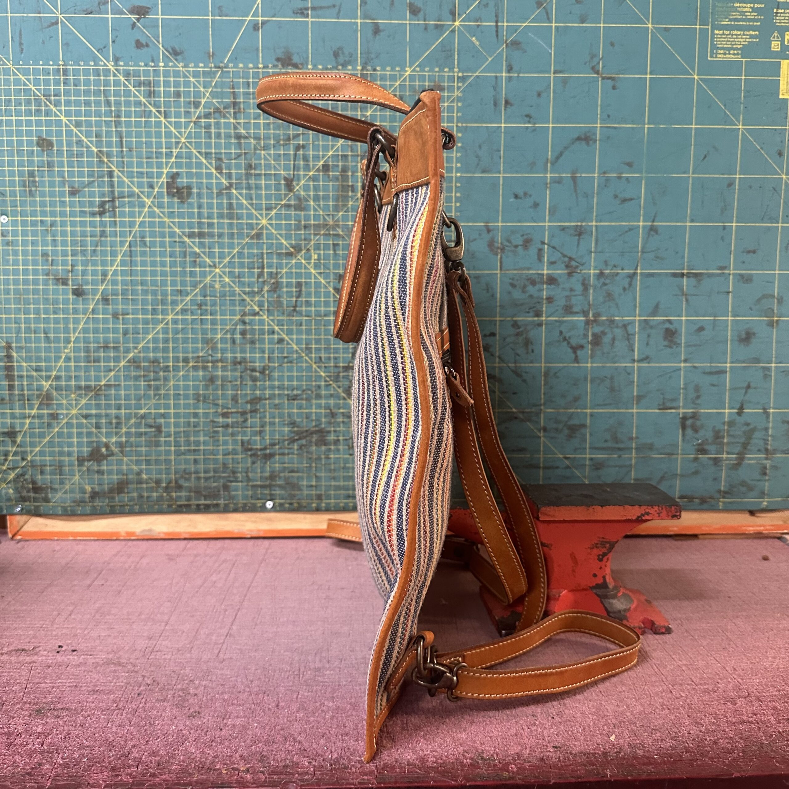 E come sempre, i materiali raccontano il momento in cui li ho scelti: tela, pelle, accoppiamenti presi quasi di slancio, giusto perché in quel preciso istante mi facevano dire “sì, è lei”.
