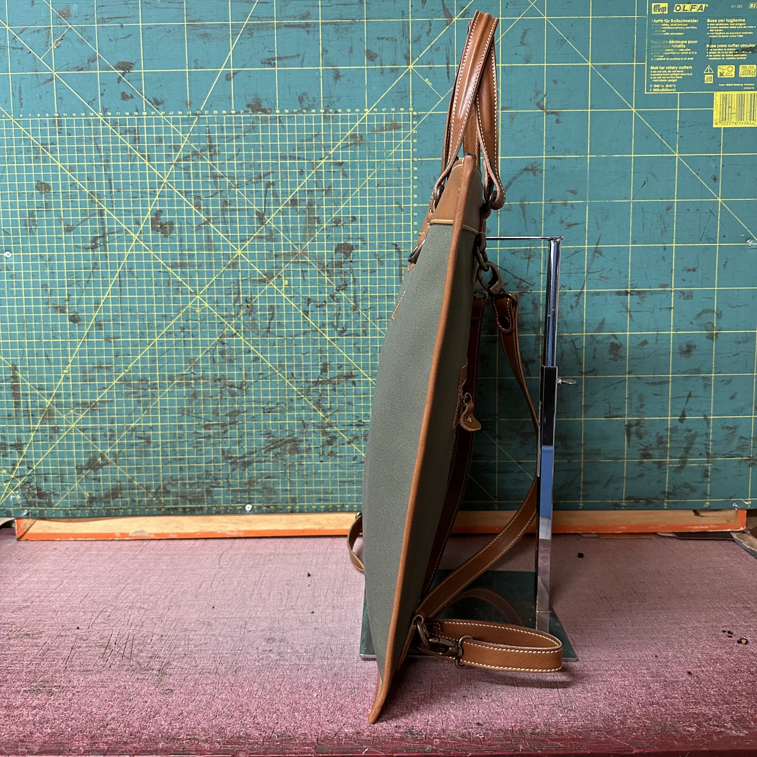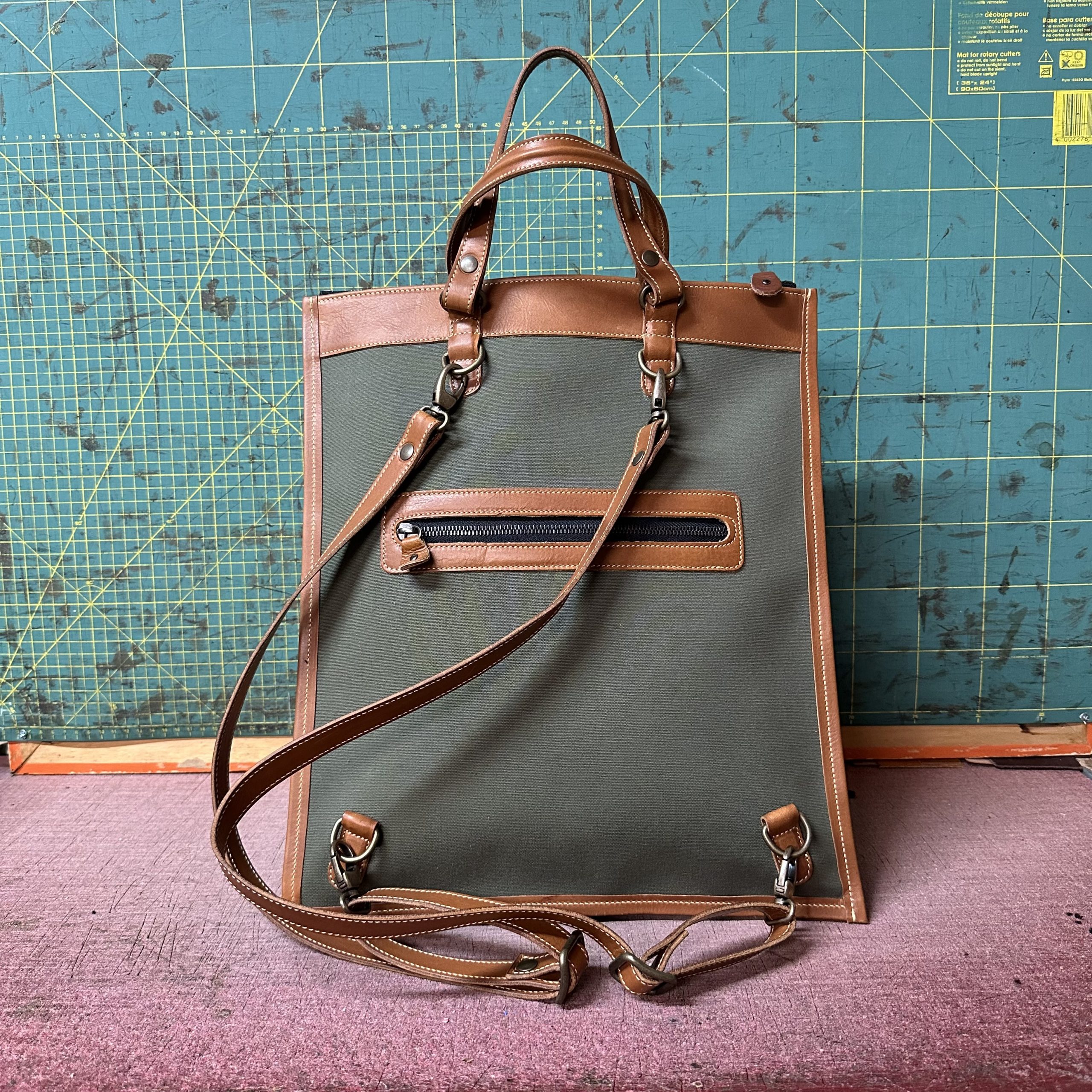 Tascona in Tela Tinta unita Verde Militare e Cuoio