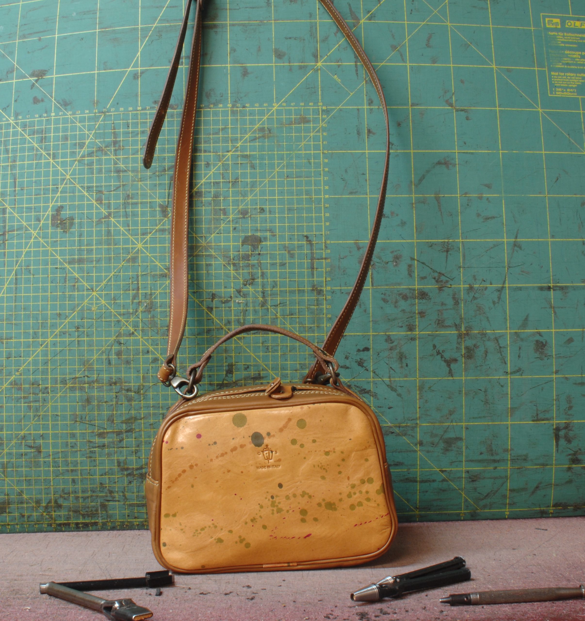 La sua caratteristica è di esser realizzata su pelle conciata al vegetale (come tutte le pelli che utilizzo sempre) e schizzata nel vero senso della parola completamente a mano!