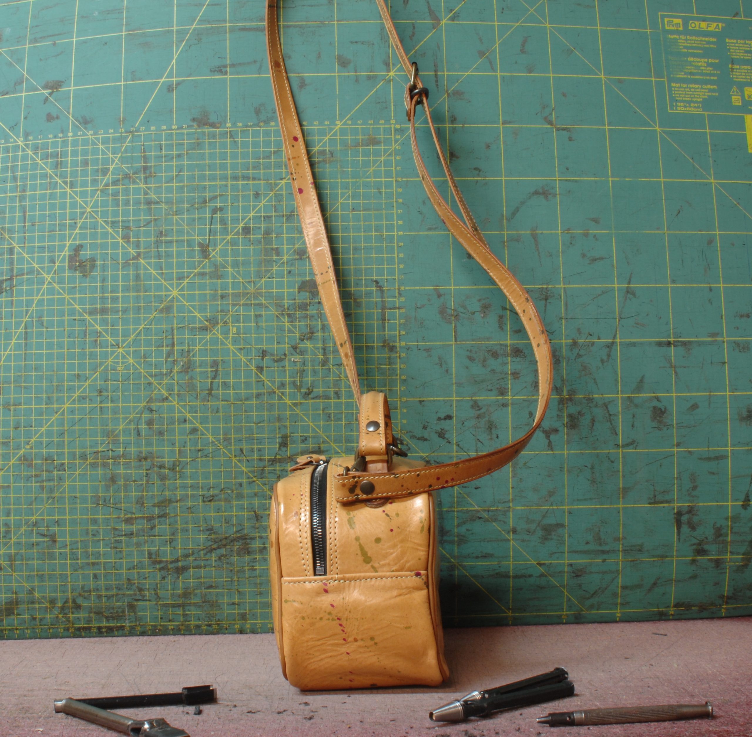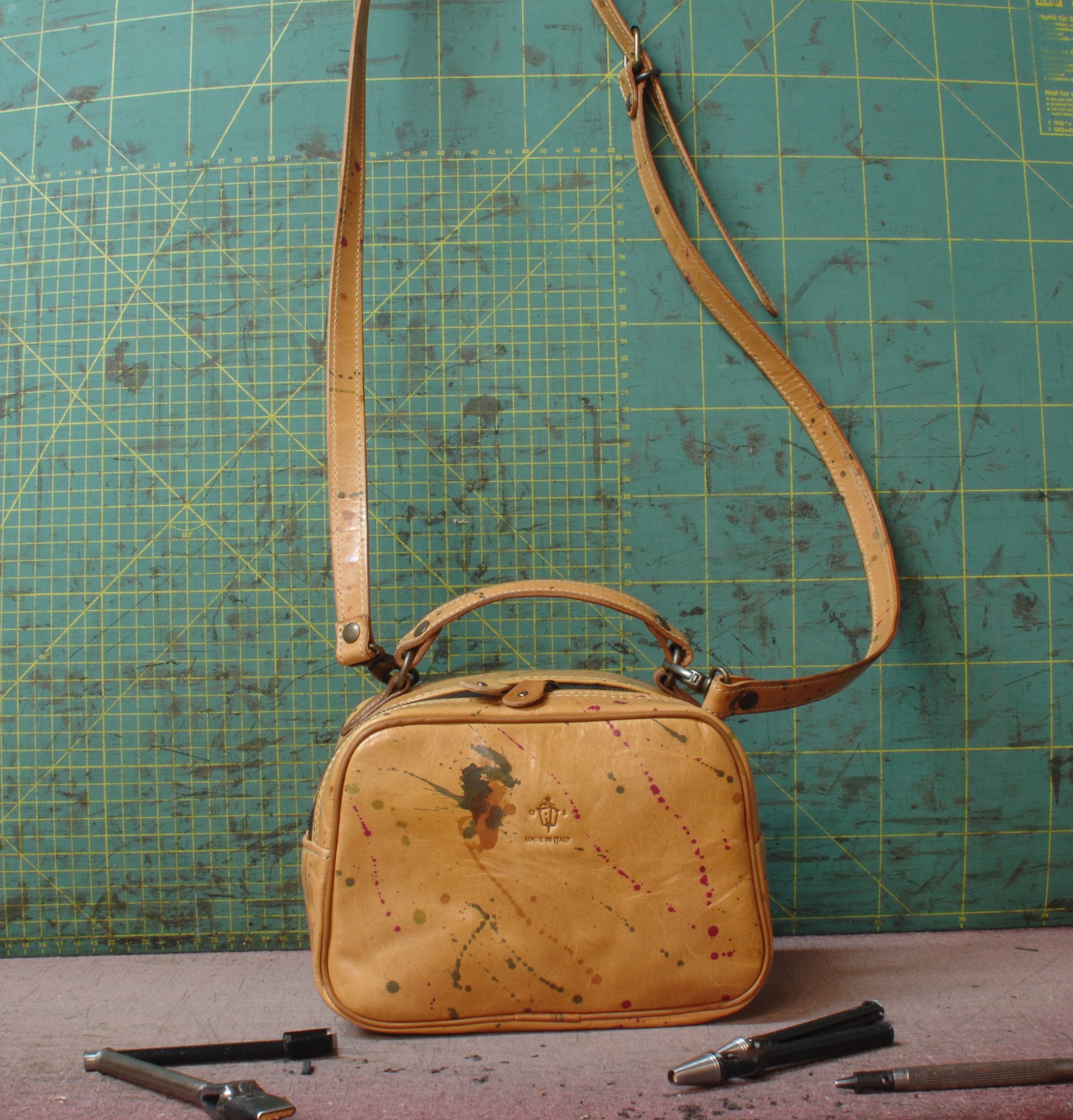 La sua caratteristica è di esser realizzata su pelle conciata al vegetale (come tutte le pelli che utilizzo sempre) e schizzata nel vero senso della parola completamente a mano!