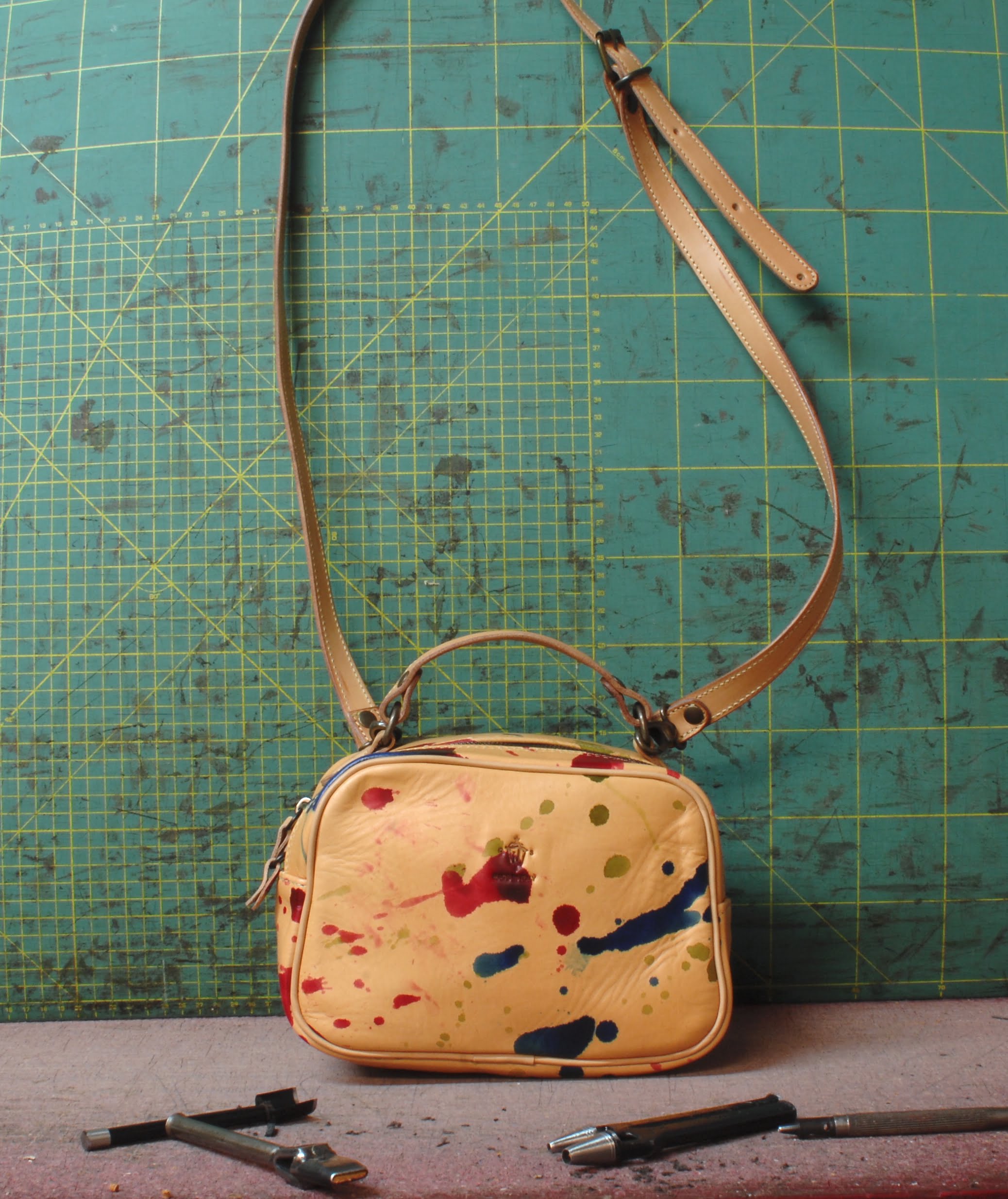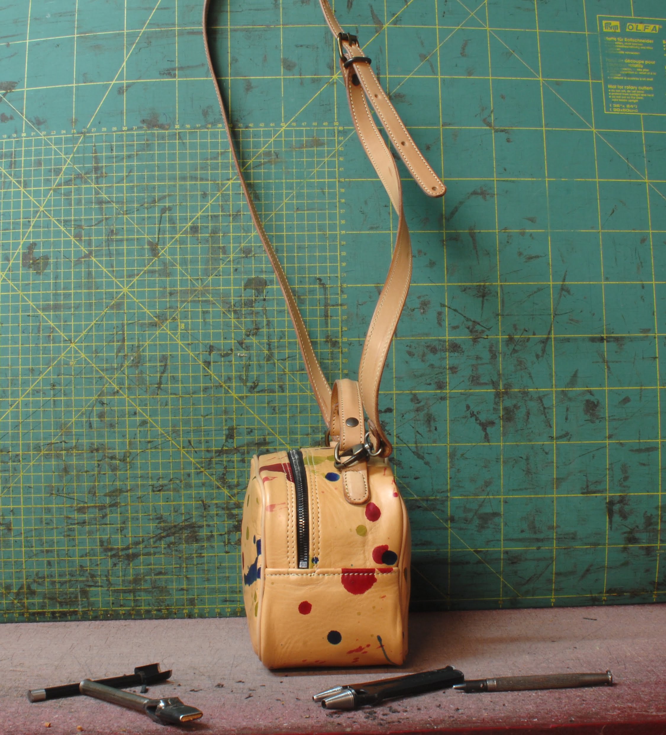 La sua caratteristica è di esser realizzata su pelle conciata al vegetale (come tutte le pelli che utilizzo sempre) e schizzata nel vero senso della parola completamente a mano!