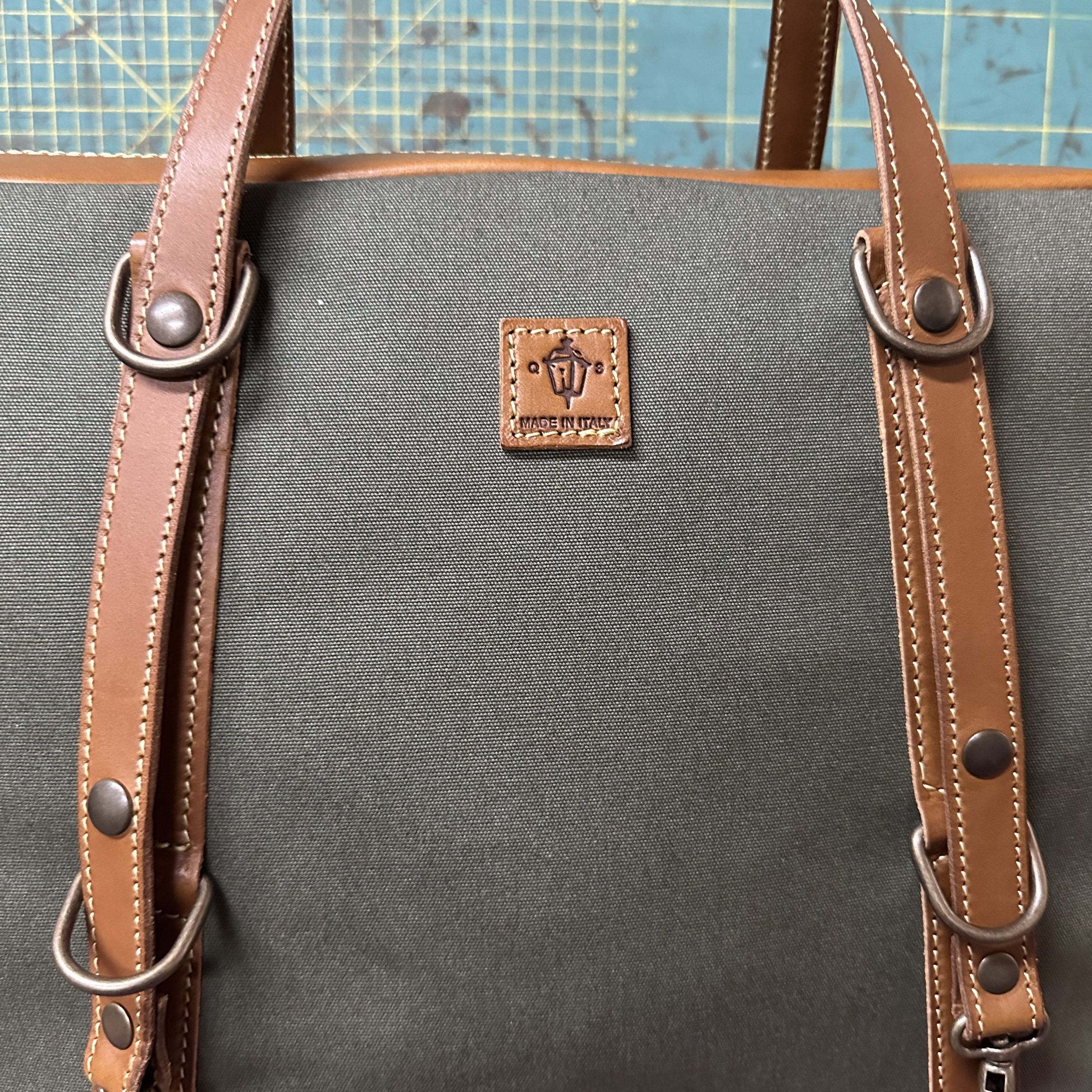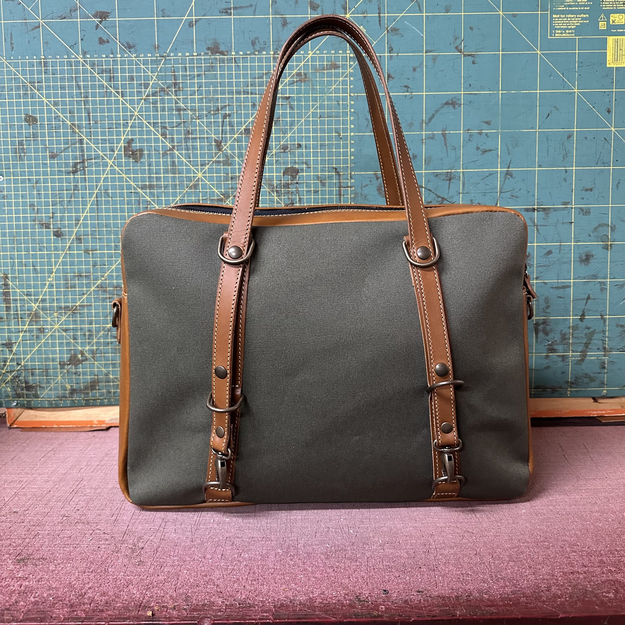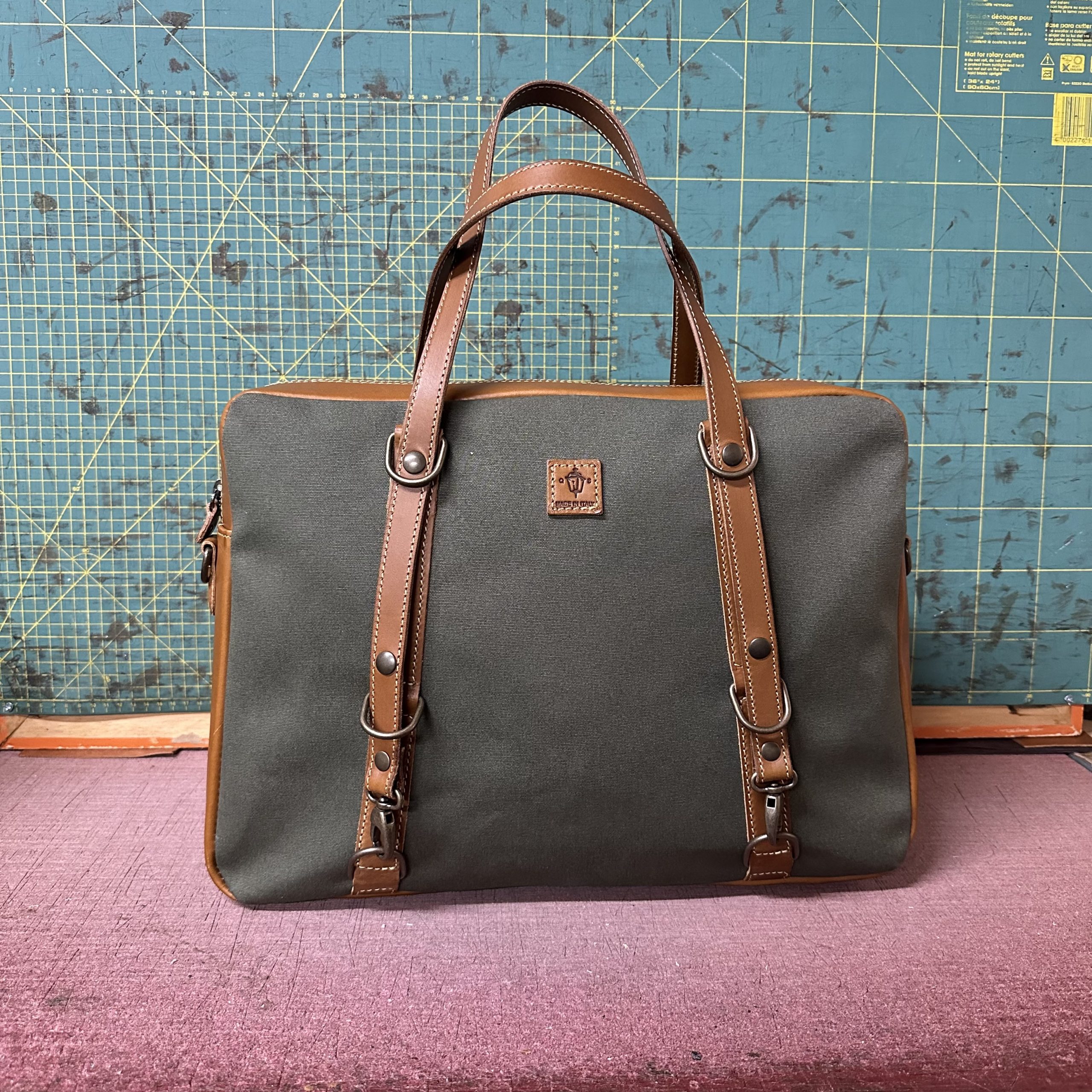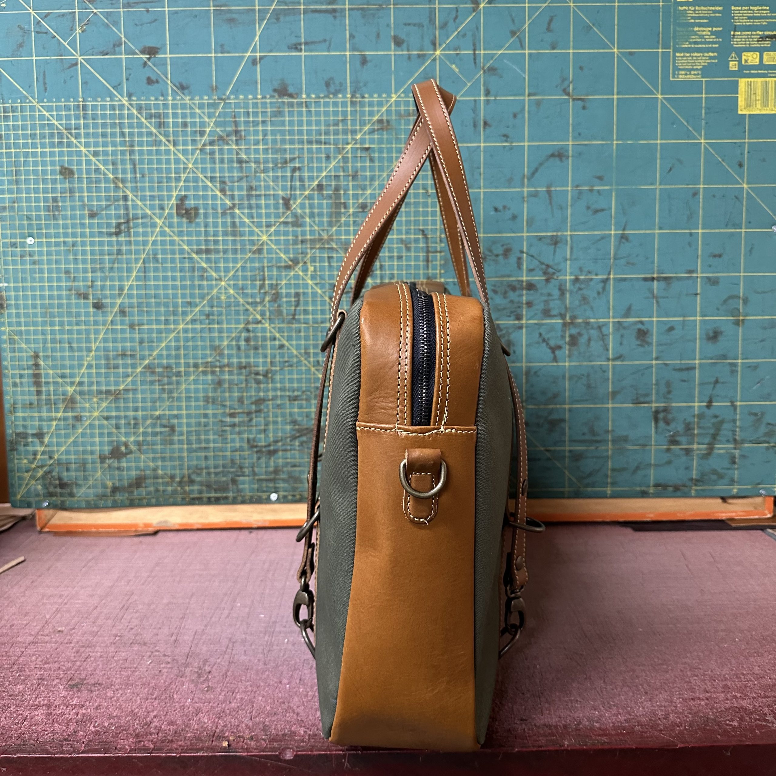 TRIBAG OPUS in Tela Olona Verde Mil. Unito e Vacchetta Cuoio