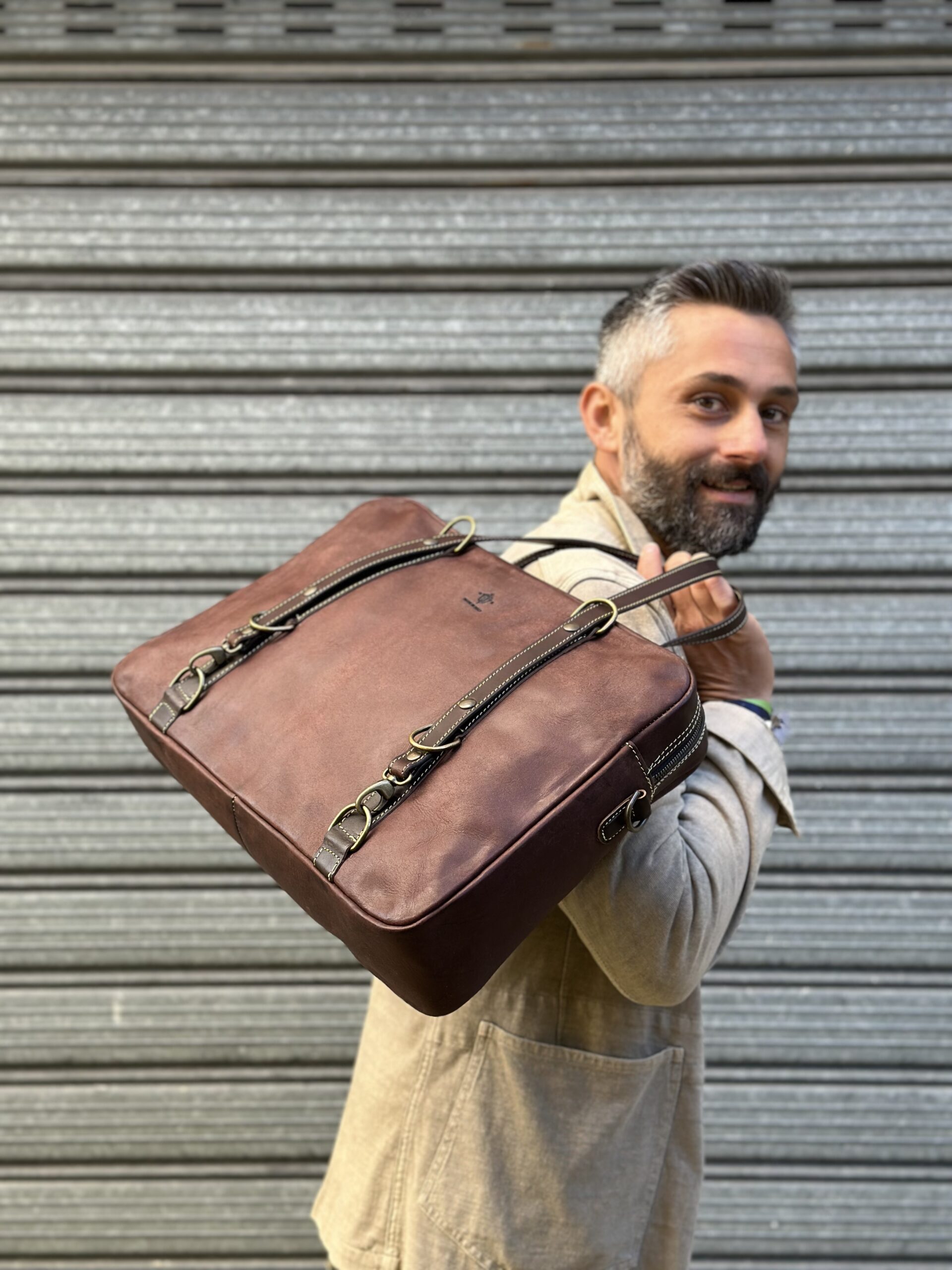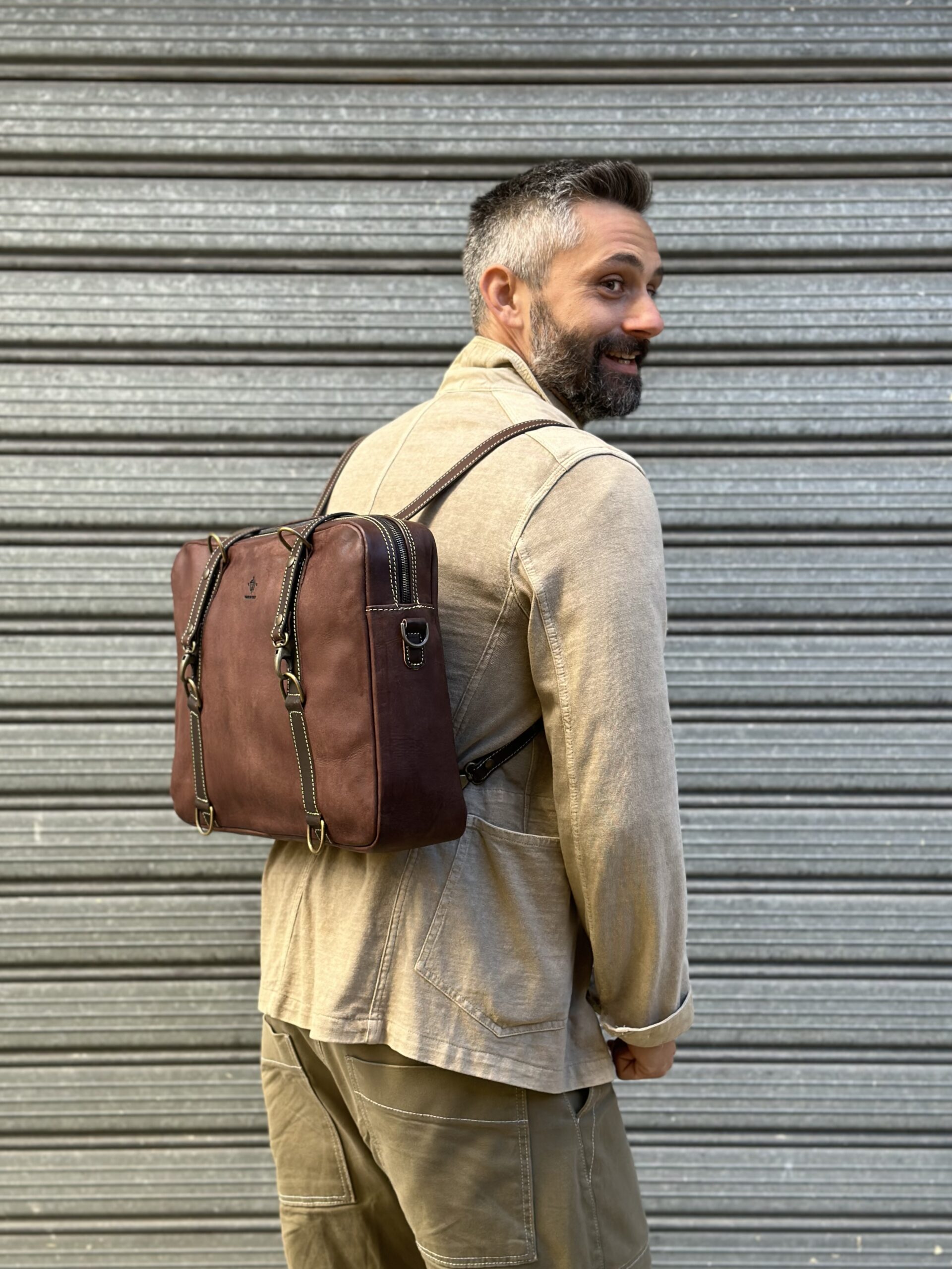 La tribag opus nasce sull’adattamento della multifunzione della classica tribag su un modello che definirei da “lavoro”. Ecco quindi che viene fuori una borsa grintosa , che può essere portata sia a mano che a spalla e volendo a zainetto( con aggiunta di tracolla).