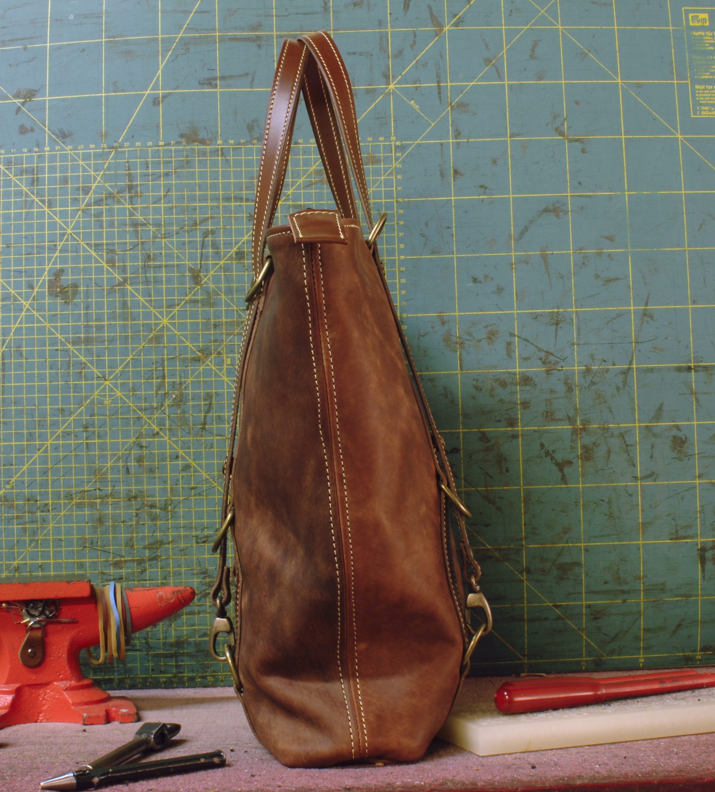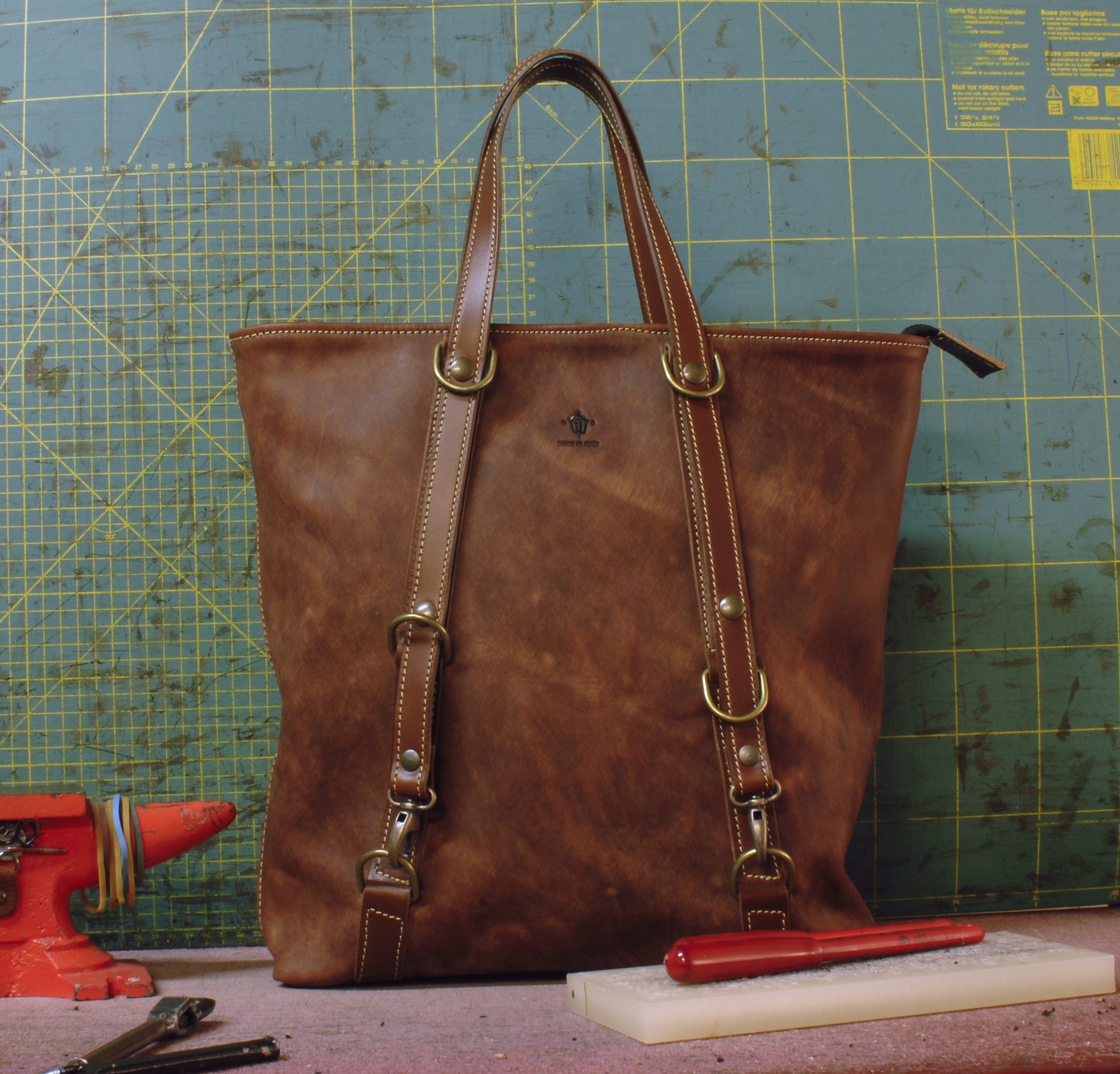 Tribag pezzo unico in vacchetta levigata base cuoio scuro !