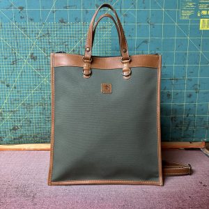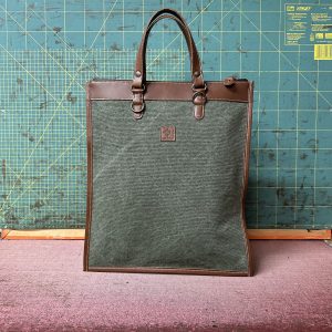 Tascona in Tela Tinta unita Verde Militare e Cuoio
